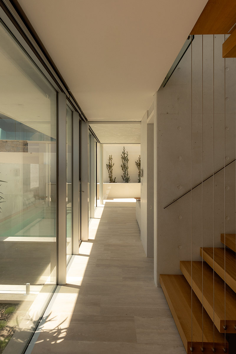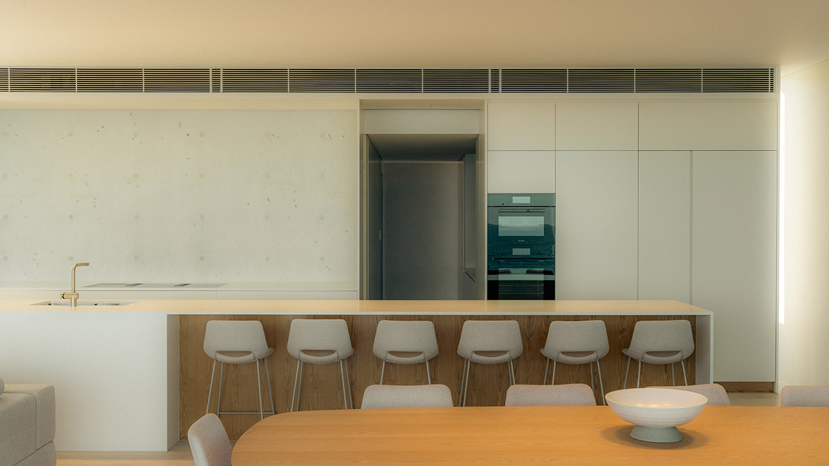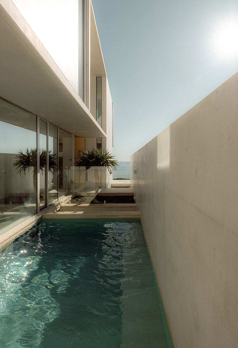 Expansive Swiss Sky-Frame glazing dissolves the boundary between inside and out, capturing the ever-changing light and coastal tones. Behind the tranquil interiors lies a highly considered layer of innovation, including integrated smart wiring, intelligent shower systems, and discreet home-automation features woven effortlessly throughout.